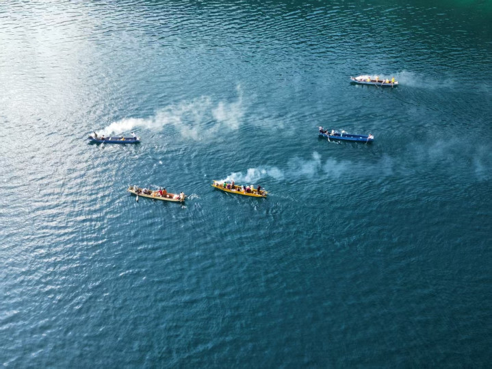 9月16日,盐源泸沽湖与木里香格里拉湖两地同步举办庆典活动。其中,泸沽湖会场以“湖畔交响”“山海致礼”“节日欢歌”“转山转海”四大板块展开,摩梭青年跳起传统甲搓舞、达巴诵经祈福、悠扬山歌与特色乐器演绎,配合猪槽船方阵,为观众带来沉浸式文化体验。香格里拉湖会场同步推出环湖徒步、民谣音乐节、藏服展示和火秀表演等多元活动。