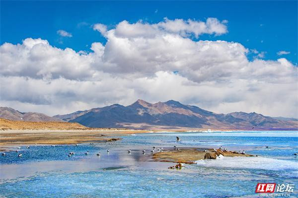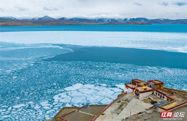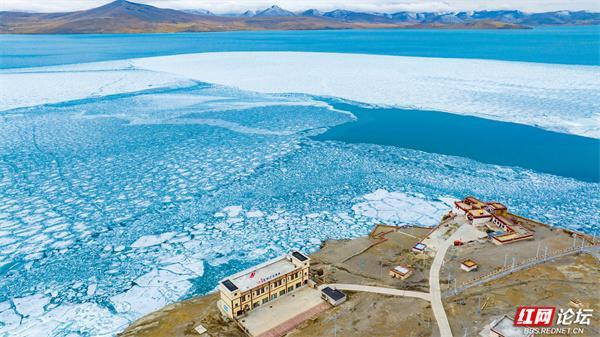 湖边,积雪与冰块相拥,堆筑起一道厚厚的冰墙。走在冰墙之上,听风过耳畔如吟唱,看湖水轻漾似起舞,观野鸟时而振翅起飞、时而俯身落湖——即便身处高原缺氧的环境,也能全然沉浸在大自然馈赠的这份赏心惬意中。