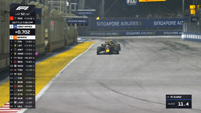 塞恩斯终于进站,维斯塔潘和诺里斯继续争夺第二名;