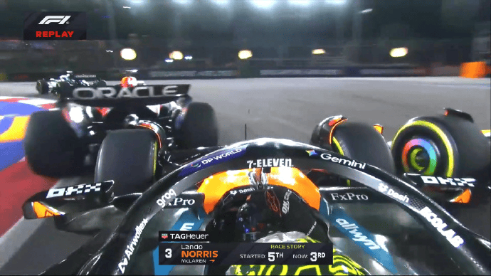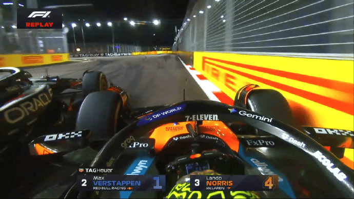 诺里斯和皮亚斯特里争夺过程中,碰到维斯塔潘,前翼端板受损;