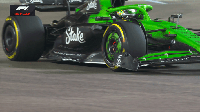 博托莱托和角田进站,索伯赛车更换发车阶段和斯托尔碰撞受损的前翼;