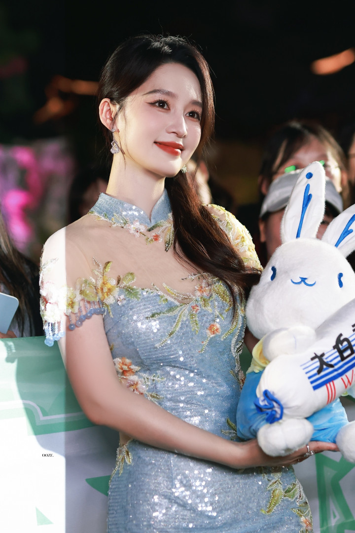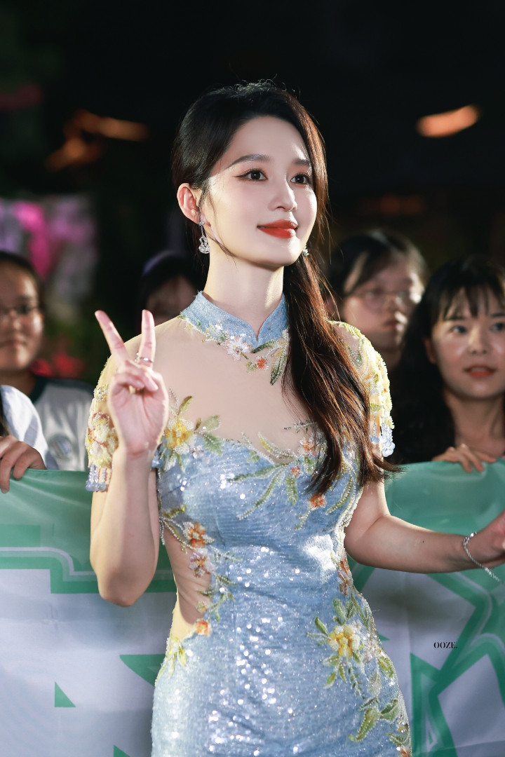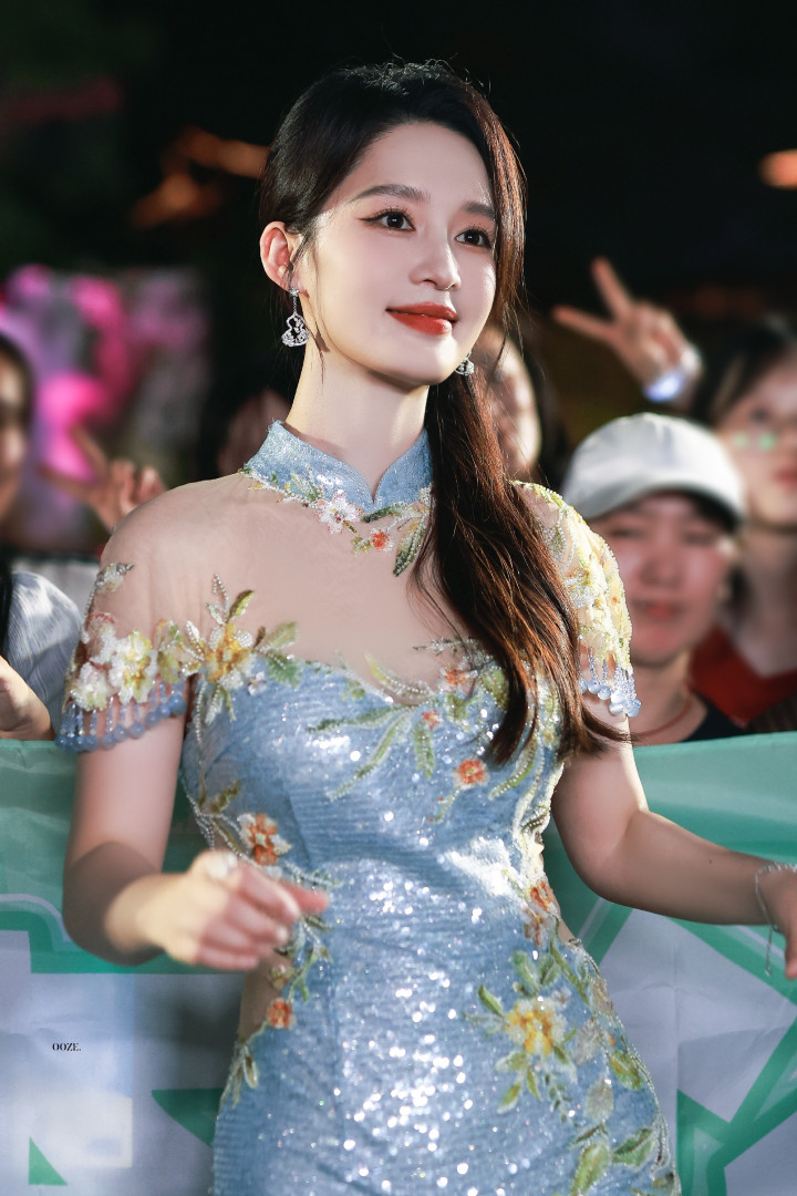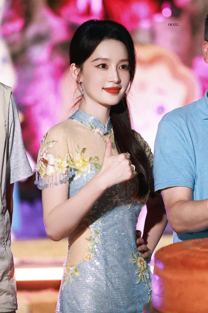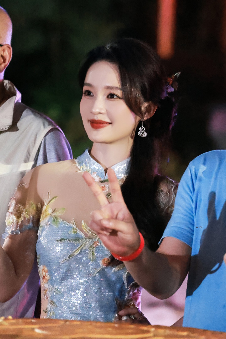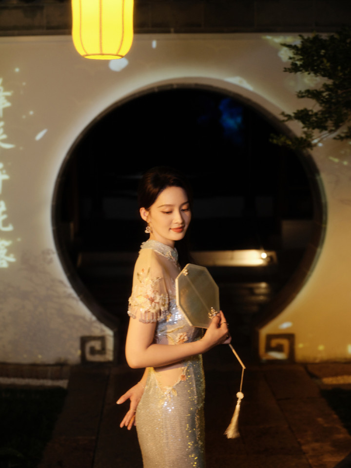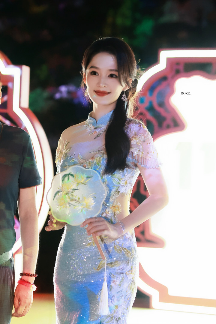 李沁的3个旗袍心机!银蓝亮片暗藏乾坤,第2个让绣扇都成了配角