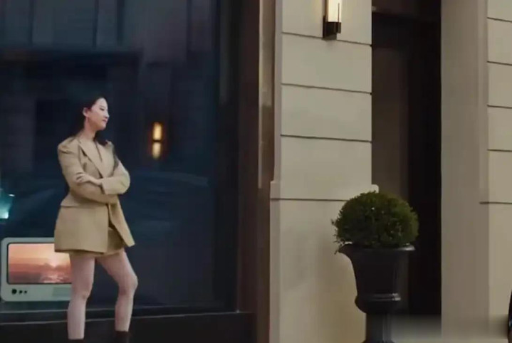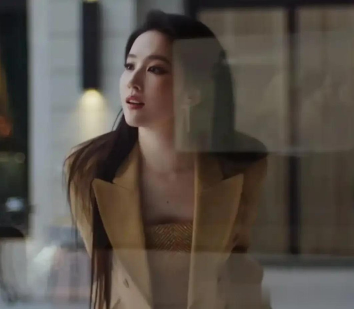 刘亦菲这是什么神仙颜值! 米色双排扣西装搭抹胸连衣裙脸美身材好
