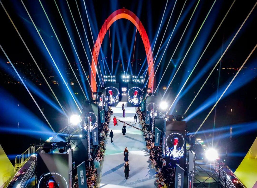 全长827.5米的巨型景观桥南京眼,被精心设计的灯光打亮,当身穿时装的模特走过,南京眼化身“时尚眼”;当600年古建筑邂逅现代时尚,华服霓裳行走于红墙黄瓦间,朝天宫成为“潮天宫”。在今年的南京国际时尚周上,南京的时尚空间告别了封闭场馆,打开全城联动的开放模式。